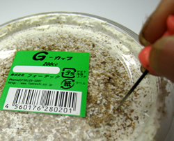 G-カップに幼虫を投入します。なるべく低温で、クリーンな環境で行うようにしましょう。