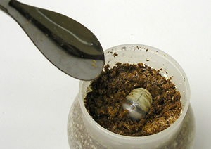 2.カップに幼虫を投入する